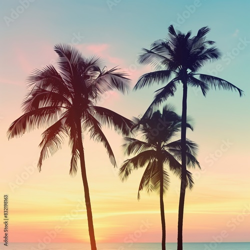 © mattegg, Naklejka premium Vertical Summer Beach Background with Palm Tree Silhouettes
