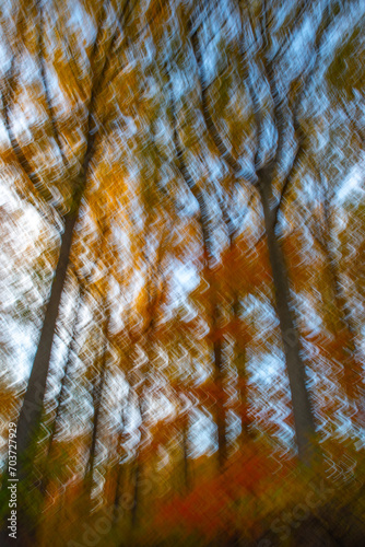 Obraz premium Vertical tall autumn trees colorful foliage icm photography abstract...