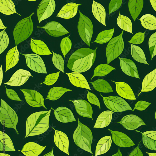 Obraz premium Vertical Tea leaves pattern background. green leaves vector pattern background. Green tea leaf seamless pattern.