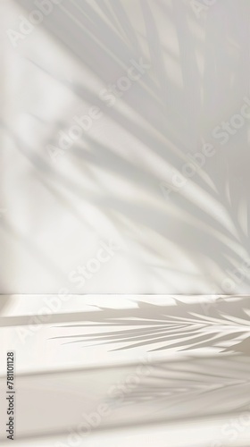 © peacefy, Obraz premium Vertical tropical leaves shadow on wall background