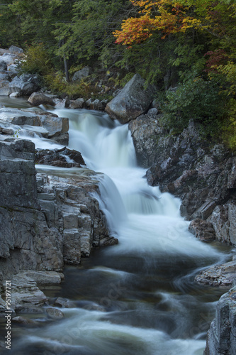 © duke2015, Obraz premium Vertical view of foliage and Swift River waterfall, New Hampshire.