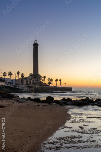 © makasana photo, Fototapeta premium vertical view of the Chipiona lighthouse in Andalusia