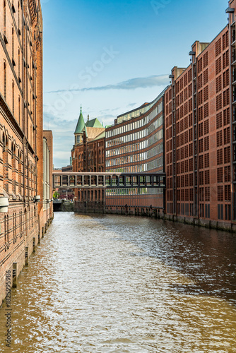 © Cavan, Naklejka premium Vertical view of the Speicherstadt canal and brick architecture