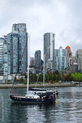 © Harold Stiver, Fototapeta premium Vertical view of Vancouver with boats