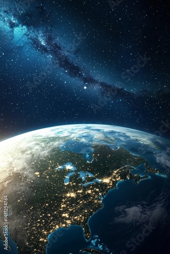 © Thunyarat, Obraz premium Vertical wallpaper showcasing Earth from space.