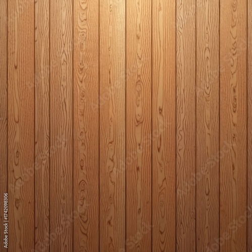 © Vadym, Fototapeta premium Vertical wood paneling features a warm brown tone with distinct grain patterns. This natural material offers a rustic and elegant backdrop for design projects. Ideal for interiors.