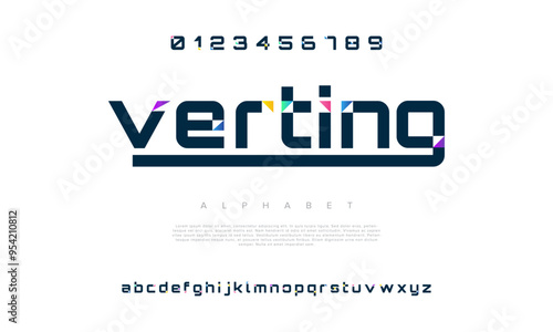 © designfourmonths, Fototapeta premium Verting creative modern geometric urban alphabet font. Digital abstract futuristic, game, techno, robot, music, logo, sport, minimal technology typography. Simple numeric vector illustration