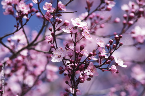 Obraz premium Verträumtes Kirschblüten Bild, rosa und baby Blau
