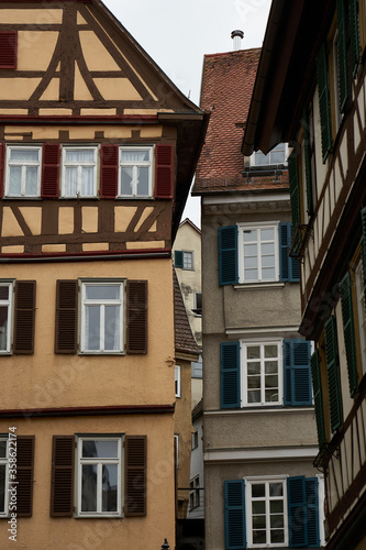© BlackForest70, Fototapeta premium Verwinkelte Fachwerkhäuser in Tübingen