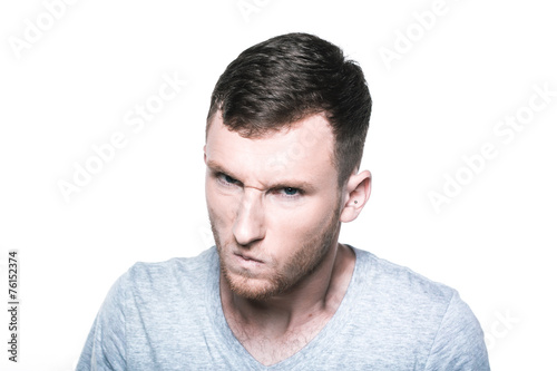 Fototapeta premium Very angry young man on whited