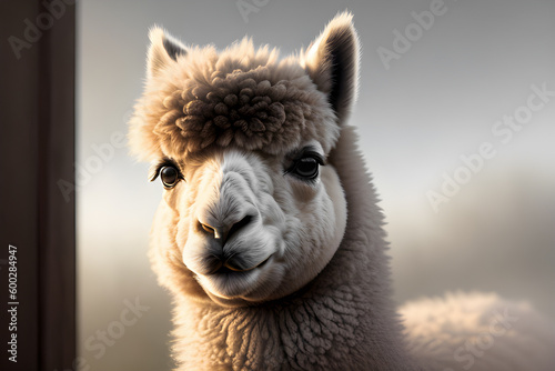 © Bogdan.Vision, Obraz premium Very beautiful alpacas in the fog and with beautiful lighting. Generative AI