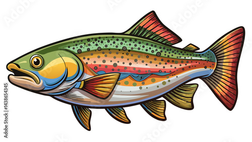 © williamnoah, Fototapeta premium Very beautiful Freshwater fish isolated on white background closeup. The rainbow trout or the steelhead is a fish in the family salmonid, type species: Oncorhynchus mykiss. white background