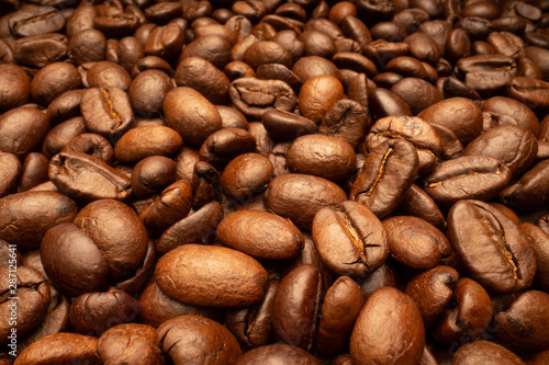 © satura_, Naklejka premium Very big roasted brown coffee beans background