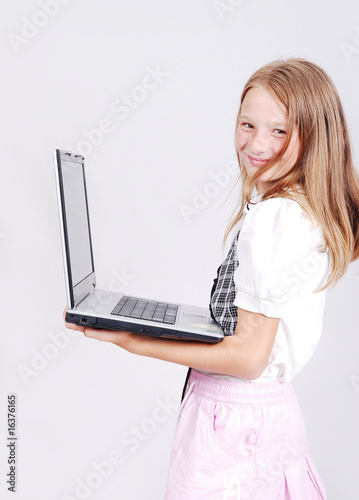 © Jasmin Merdan, Fototapeta premium Very cute blond girl with laptop isolated