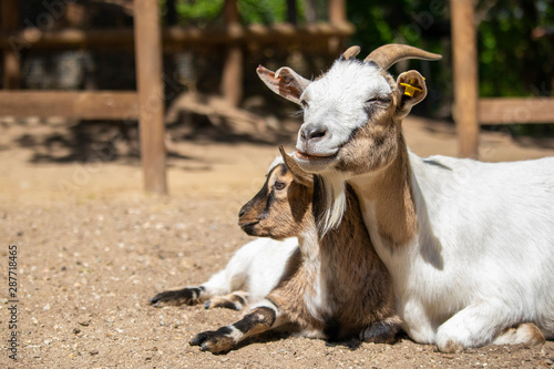 Fototapeta premium Very cute goat, alone and with its mom