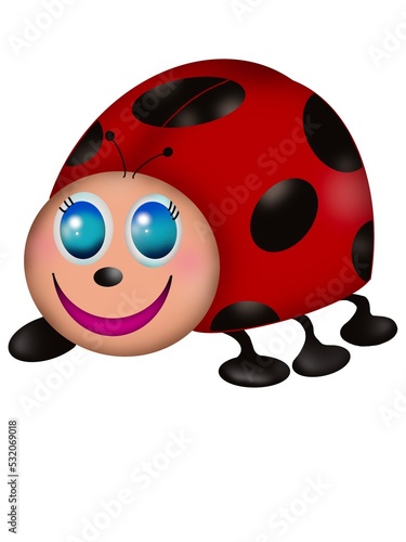 © Derville, Fototapeta premium Very cute ladybug with pink face, blue eyes and black dots on her red body