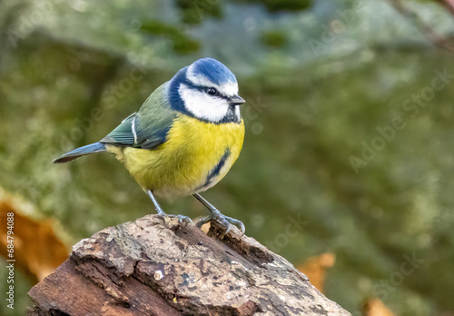 © Sarah, Obraz premium Very cute little blue tit bird perched on a tree branch in the forest