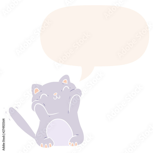 © lineartestpilot, Obraz premium very happy cute cartoon cat and speech bubble in retro style