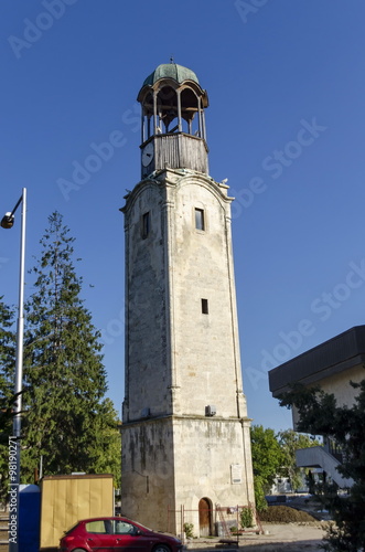 Fototapeta premium Very old clock tower in Razgrad town, Bulgaria