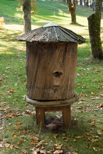 Fototapeta premium Very old, historical empty beehive in the garden. Traditional beehive from...