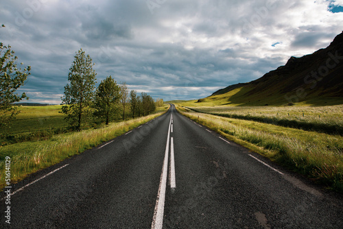 © Nomad Pixel, Fototapeta premium Very picturesque empty road in iceland in summer. Asphalt road as a symbol of freedom and travel.
