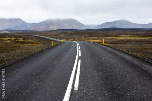 Fototapeta premium Very picturesque empty road in iceland in summer. Asphalt road as a symbol of...