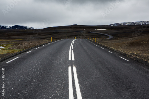 Fototapeta premium Very picturesque empty road in iceland in summer. Asphalt road as a symbol of...