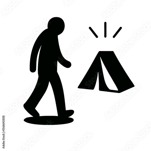 © sahenur89, Fototapeta premium very simple flat and single minimalist Soaring Tent Step Silhouettes in black on a white background