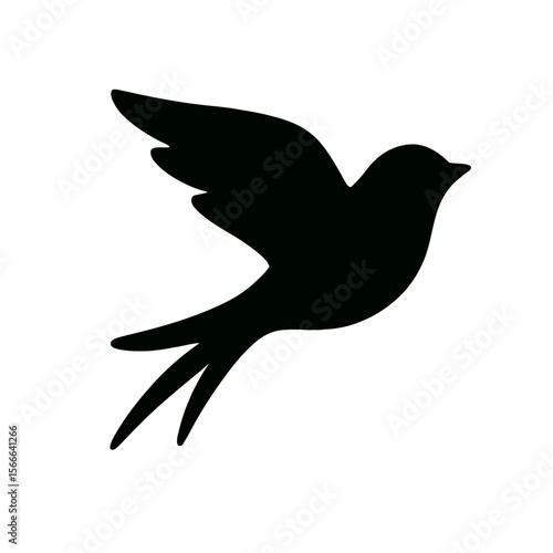© sahenur89, Obraz premium very simple flat and single minimalist Trailing Bird Silhouettes in black on a white background
