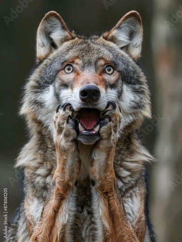 © Vladimir, Obraz premium Very surprised wolf with open mouth