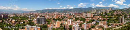 © Bruno, Obraz premium Very wide angle panorama (cityscape) of Medellin on a sunny day, Antioquia, Colombia.