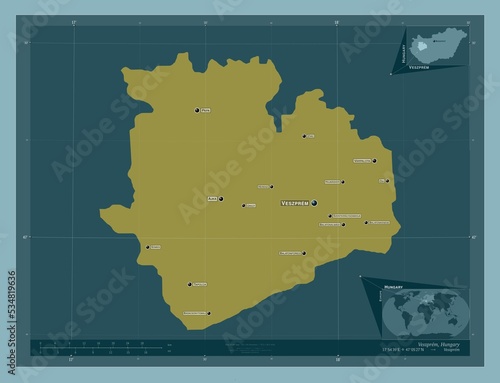 © Yarr65, Obraz premium Veszprem, Hungary. Solid. Labelled points of cities