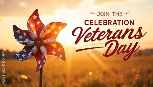 Naklejka premium Veterans day celebration with pinwheel and sunset background in a field