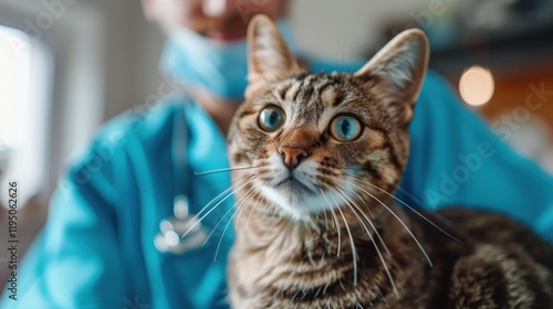 Naklejka premium Veterinarian. Veterinarians perform routine examinations of pets on a table in a modern veterinary clinic. Treatment and vaccination of pets. Animal care