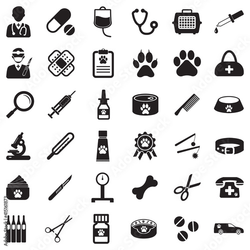 © andrej, Obraz premium Veterinary Icons. Black Flat Design. Vector Illustration.