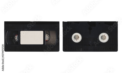 Fototapeta premium VHS videocassette, mockup with front and back sides on white background with blank space for mockup
