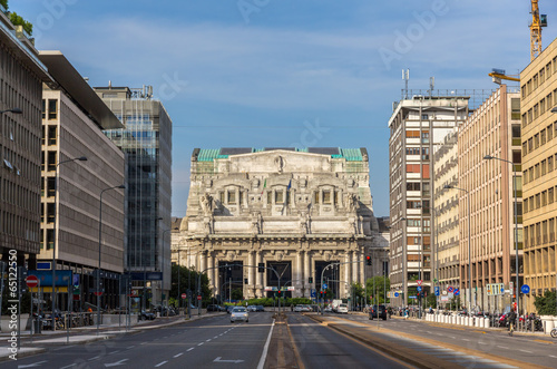 Fototapeta premium Via Vittor Pisani prowadząca do stacji Milano Centrale