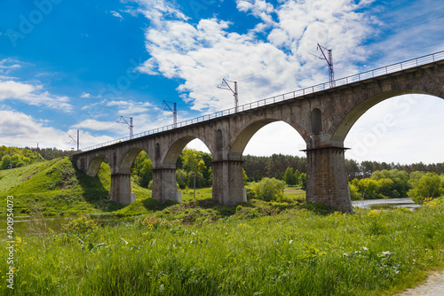 © anatoliil, Fototapeta premium Viaduct. Beautiful old arched stone railway bridge against the backdrop of a scenic landscape