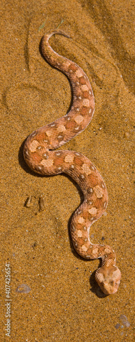 Fototapeta premium Vibora sopladora cornuda (Bitis caudalis), Desierto del Namib, Namibia, Africa