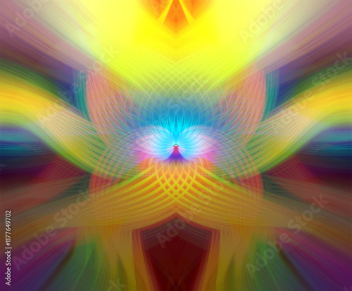 © Aniebert, Obraz premium Vibrant abstract art with colorful symmetrical patterns and glowing light effects, perfect for creative and artistic designs