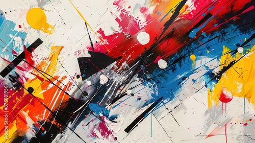 © Wp Background, Fototapeta premium Vibrant Abstract Art with Geometric Figures and Colorful Paint Splatters