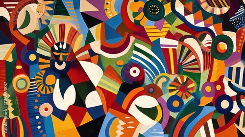 Obraz premium Vibrant abstract art with geometric shapes and bold colors.