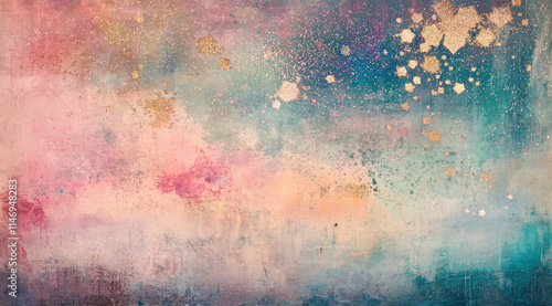 Fototapeta premium Vibrant abstract artwork features soft pastel colors blending seamlessly with golden splashes, evoking a calming and imaginative feeling in any space.