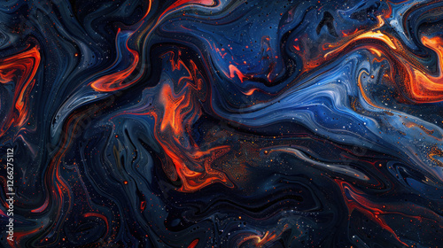 Fototapeta premium vibrant abstract background featuring swirling patterns in blue, orange, and black, evoking sense of cosmic energy and movement