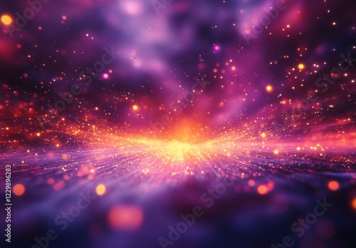 Fototapeta premium Vibrant Abstract Background with Colorful Particles and Light Rays in Cosmic...