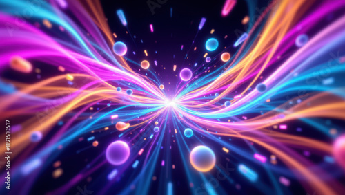 Fototapeta premium Vibrant abstract background with colorful swirls and floating spheres in a...