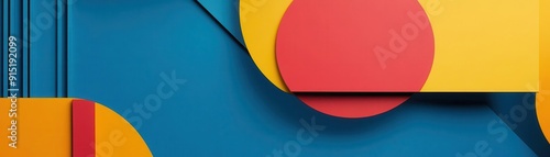 Naklejka premium Vibrant abstract background with geometric shapes in blue, yellow, and red. Modern design ideal for various creative projects.