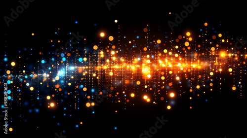 Fototapeta premium Vibrant abstract background with glowing dots and waves in orange, blue, and...