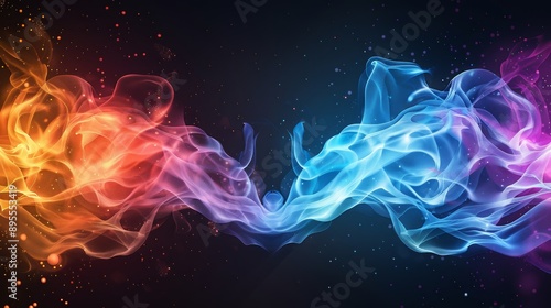 Fototapeta premium Vibrant abstract background with intertwining red and blue smoke creating a...