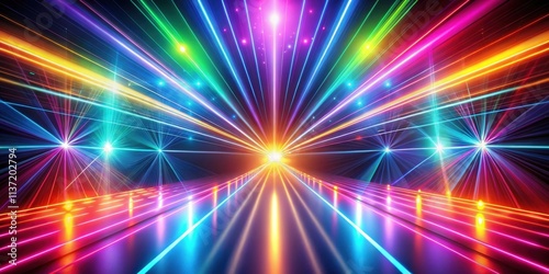© Nasnunt, Naklejka premium Vibrant abstract background with neon rays and glowing lines, render, abstract, colorful, spectrum, bright, neon, rays